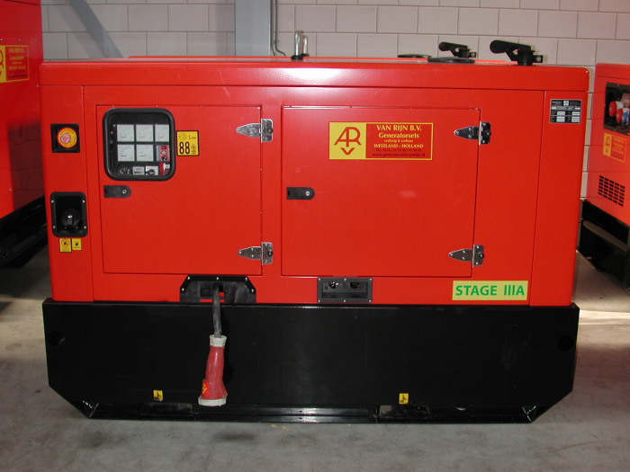 geluidgedempte omkasting en een Iveco 115 KVA in scheepsuitvoering.